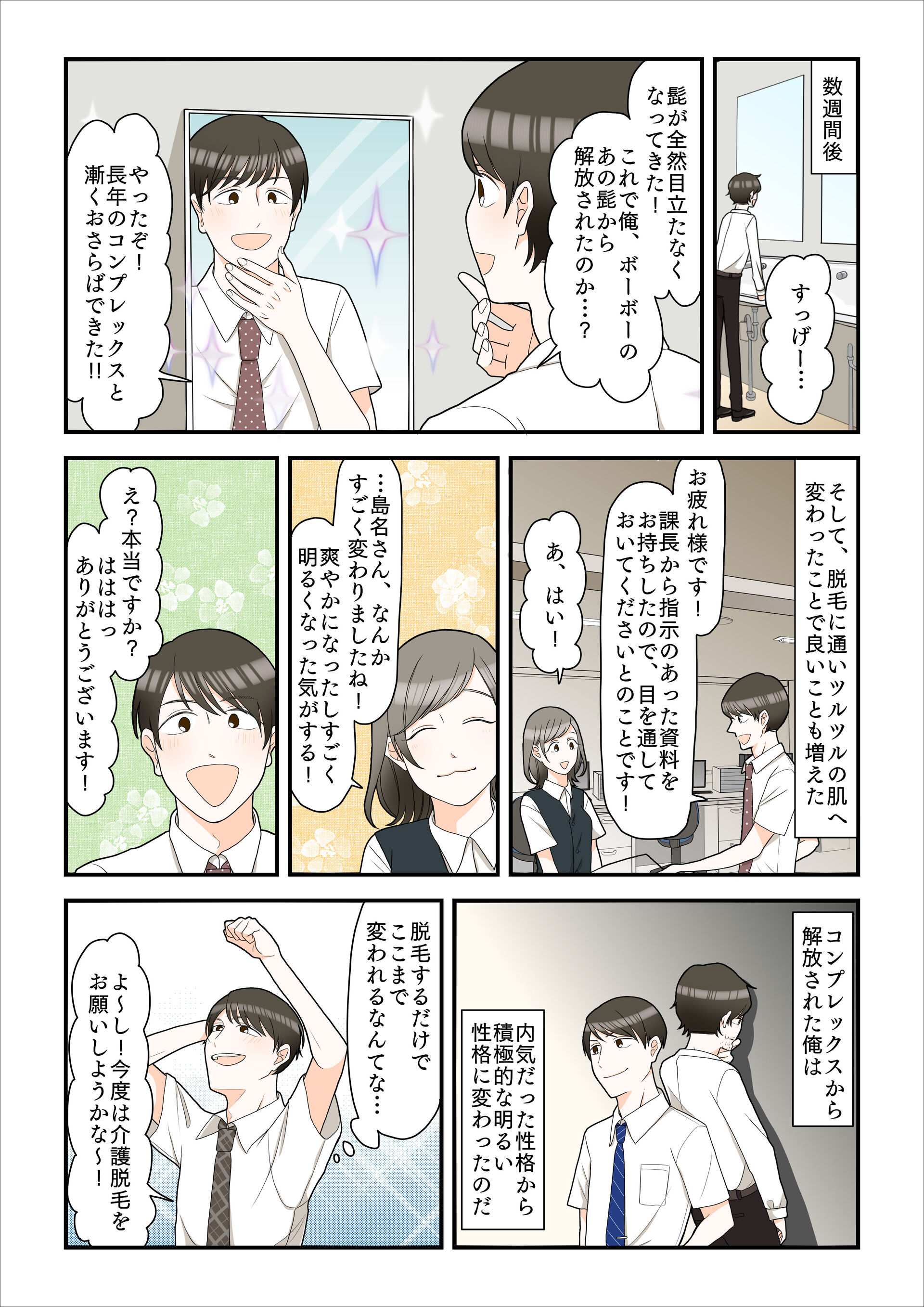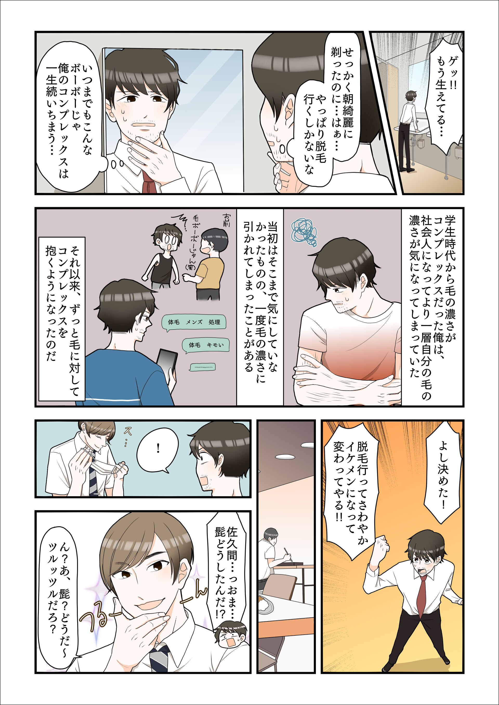 「 学生時代から毛の濃さがコンプレックスだった俺は、社会人になってより一層自分の毛の濃さが気になってしまっていた 」