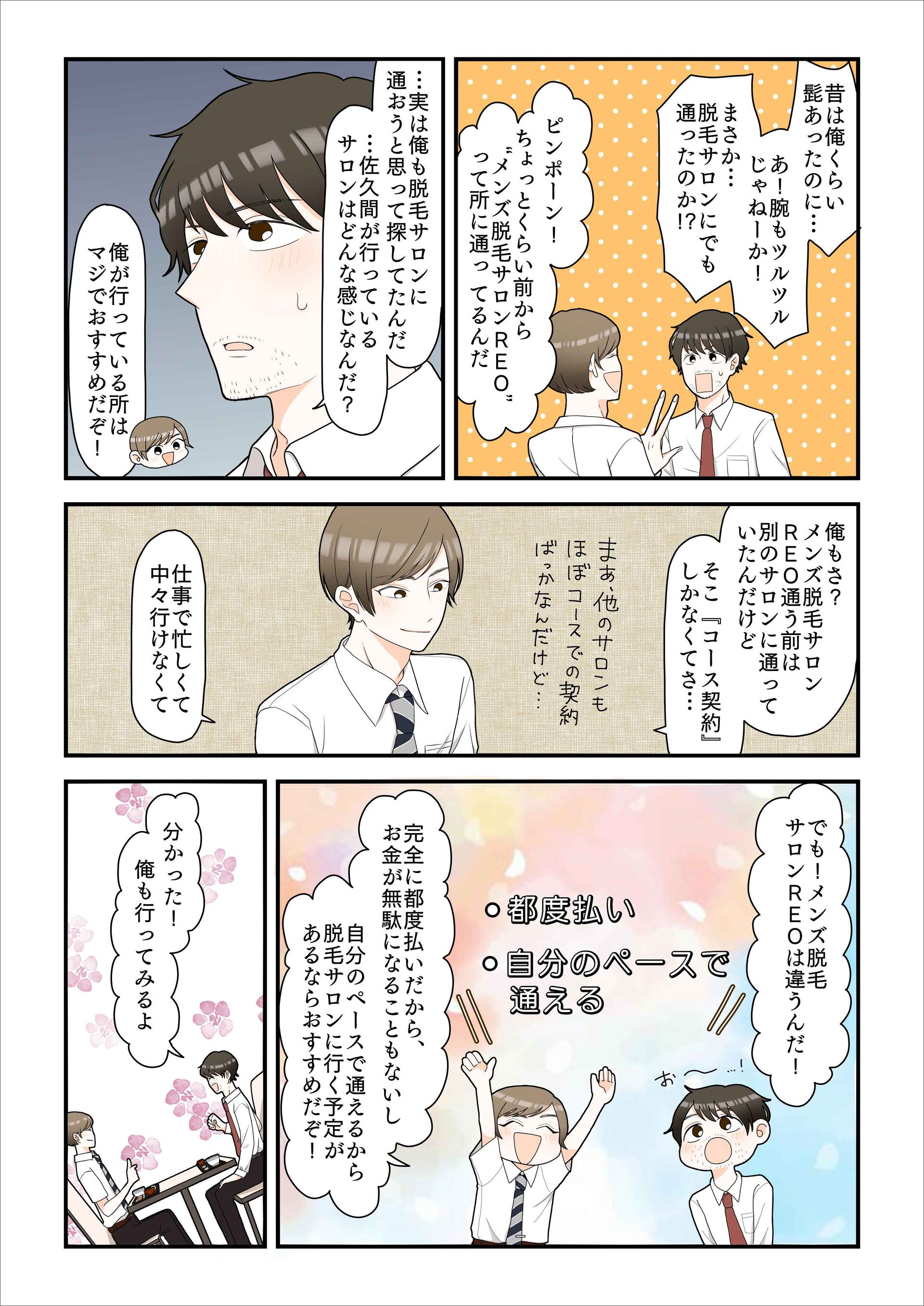 「 ピンポーン!ちょっとくらい前から“メンズ脱毛サロンREO”って所に通ってるんだ 」